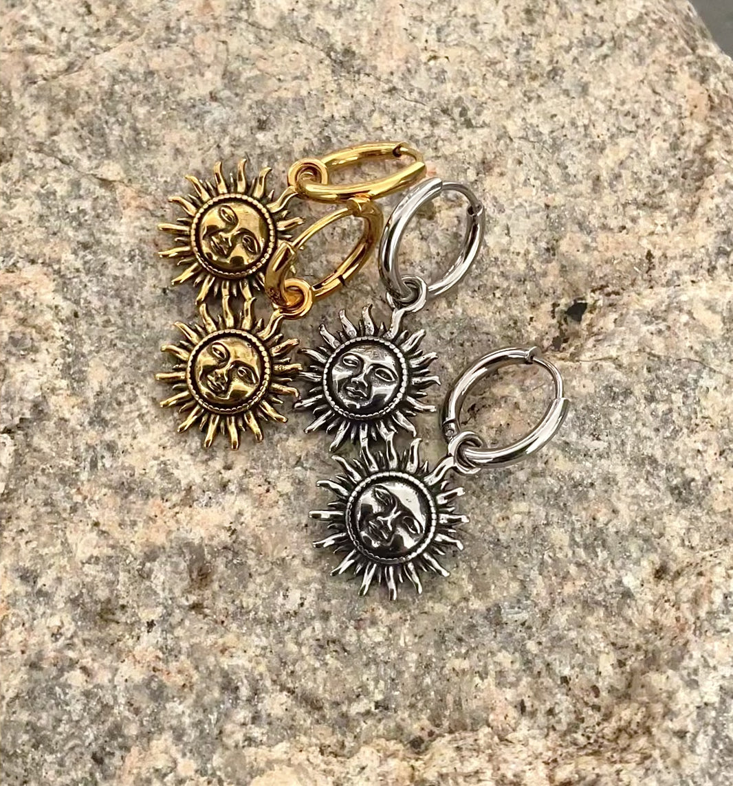These Sun hoops will bring a touch of sunshine to your day. Their cute sun design with a face will brighten up any outfit. Perfect for both men and women, they are lightweight and durable for all-day comfort.