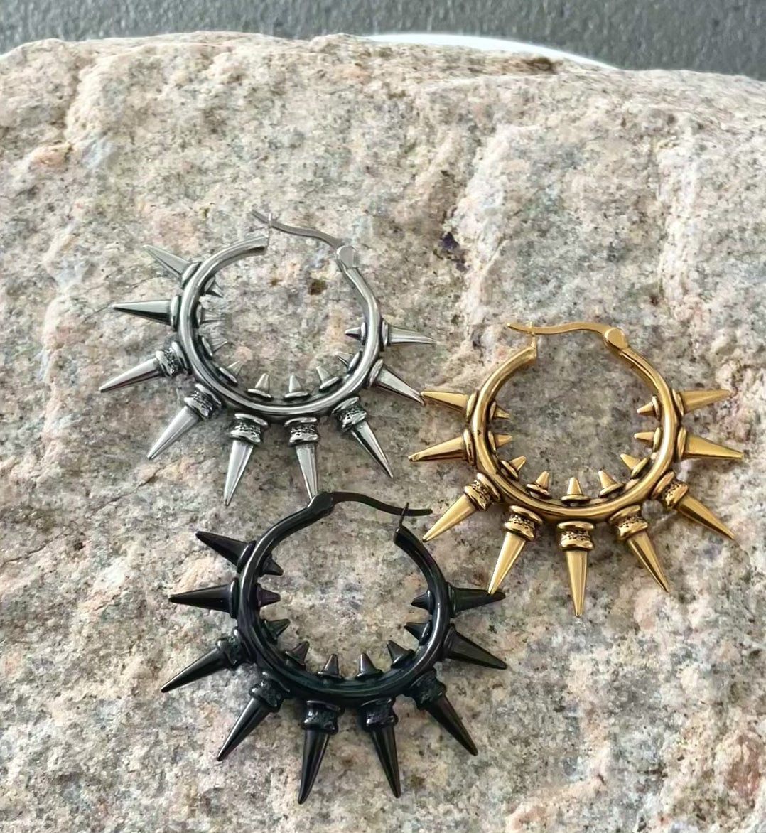 These striking tribal spike hoop earrings radiate fierce energy. Perfect for adding an edgy and fearless touch to your style, they make a captivating accessory for any outfit or occasion.